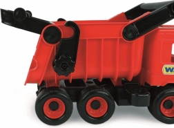 Den røde tipvogn Wader Mellem Lastbil vil glæde ethvert barn, der elsker eventyr. Denne kvalitets plast lastbil har seks hjul, hvilket giver den stabilitet og holdbarhed selv under krævende lege.
