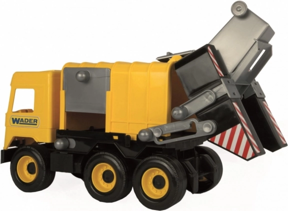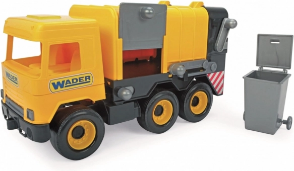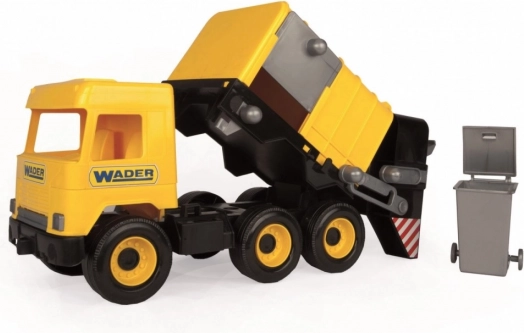 Bilen har en funktionel baglæsser, som gør det nemt at læsse og tømme “affald” fra den medfølgende skraldespand. Den friske gule farve med sorte detaljer og seks hjul sikrer stabilitet og jævn kørsel på forskellige underlag.