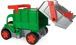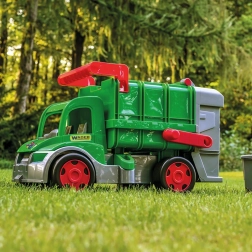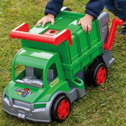 Skraldebilen WADER GIGANT FARMER giver børnene realistisk leg med byens oprydning. Takket være den bevægelige løftemekanisme tømmes den medfølgende container let, bagklap, der kan åbnes, gør lastning og losning nem, og fritløbende hjul sikrer jævn kørsel. Bæreevne op til 50 kg gør det muligt for børn at sætte sig på bilen og holde i det praktiske øverste håndtag, mens det forreste træk muliggør bugsering eller sammenkobling med et andet køretøj eller en snor.