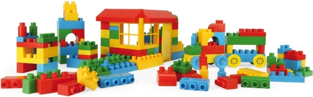 Form og størrelse på klodserne er tilpasset de mindstes små hænder. Takket være den lette sammensætning af de enkelte dele er legetøjet ideelt til helt små børn. Hele sættet er pakket i en praktisk plastbeholder, som hjælper dig med at holde orden på legetøjet efter legen.