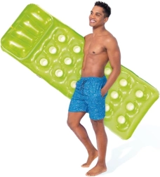 Det kvalitetsstærke PVC-materiale er slid- og rivbestandigt, så du kan fokusere på ren afslapning. Med målene 188 × 71 cm tilbyder madrassen rigelig plads til behagelig solbadning, hvad enten det er i havepoolen eller i åbent vand.