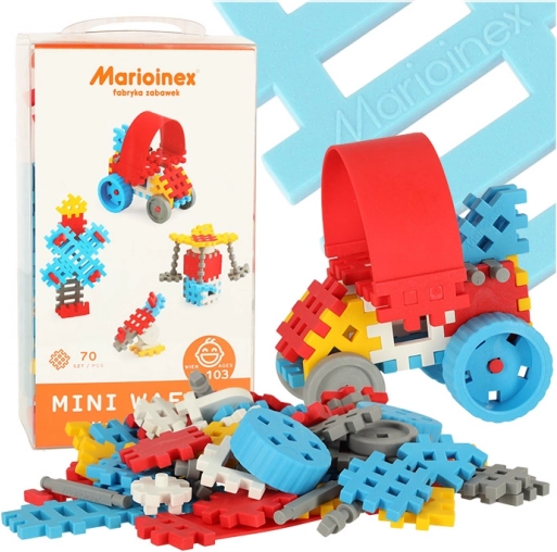 Mini Wafle konstruktør er et flot blåt sæt, der indeholder 10 nye dele og udvider byggemulighederne. I pakken findes også en inspirerende vejledning, så dit barn kan skabe attraktive modeller nemt og hurtigt. I alt 70 dele sikrer varieret og endeløs leg, samtidig med at de hjælper med at udvikle fingerfærdighed og logisk tænkning.