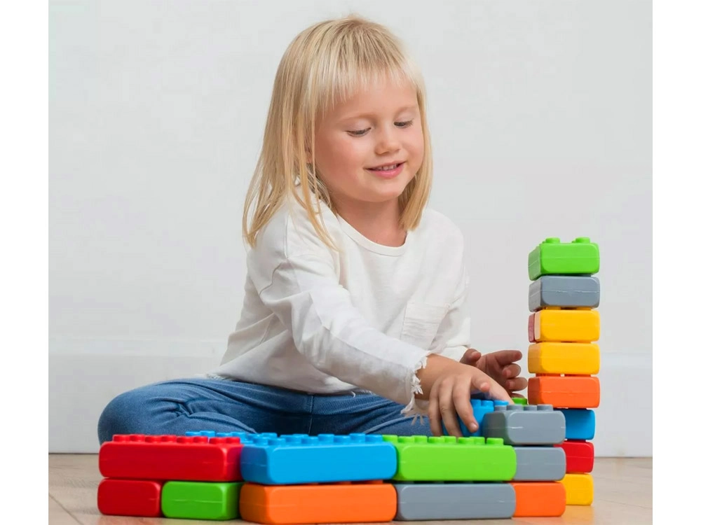 - Let at samle og kombinere - Klare farver, der fanger børns opmærksomhed - Opmuntrer fantasien og udvikler sanser som syn og berøring - Ideel gave til aktiv leg og til et kreativt miljø i børnehaven