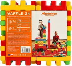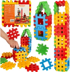 Dette byggesæt med 24 farverige dele på cirka 10,5 × 10,5 cm er ideelt til de første konstruktionslege. De store og let grebbare klodser sættes sikkert sammen, holder formen og kan gentagne gange skilles ad og samles uden at blive beskadiget. Børn får masser af sjov og styrker samtidig hånd-øje-koordination og logisk tænkning.