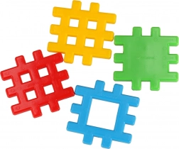 Dele i størrelsen ca. 10,5 × 10,5 cm med gitterlås ligger behageligt i hånden og forbindes sikkert – perfekt til små hænder fra 2 år.