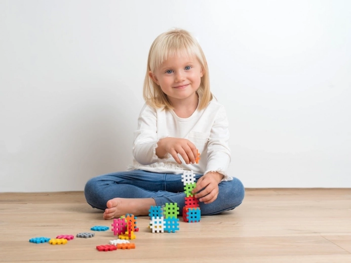 Mini Waffle byggesættet hjælper børn med at udvikle finmotorik og fantasi. Takket være de forskellige former kan børn skabe unikke konstruktioner og dermed forbedre deres færdigheder.