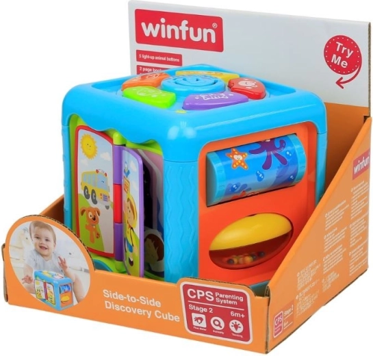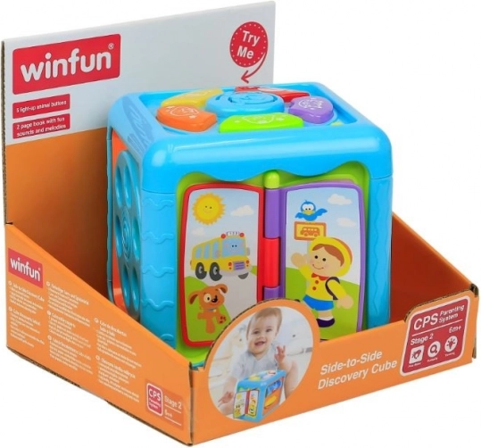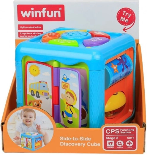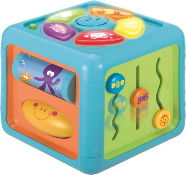 Hver side af terningen byder på mange attraktioner og overraskelser, der fanger dit barns opmærksomhed i lang tid. Legetøjet stimulerer alle barnets sanser og støtter dets udvikling. Strålende, livlige farver, behagelige lyde og blinkende lys opmuntrer dit barn til leg. Læringsterningen giver sjov i lang tid.