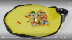 Gør oprydning til leg. Denne kurv med integreret legetæppe lader børnene brede klodser, dukker eller biler ud på en stor flade og efter legen blot stramme snoren – alt forvandles på et øjeblik til en bærbar pose. Vandafvisende materialer beskytter legetøjet, og den høje kant holder småtingene på plads.