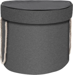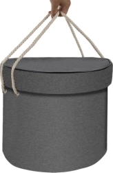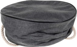 Takket være de komfortable rebhåndtag kan kurven nemt bæres fra rum til rum, ud på terrassen eller med på picnic. Den neutrale grå kurv og det gul-sort legetæppe passer ind i enhver indretning.