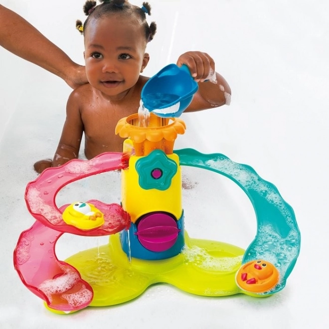Denne farverige akvapark med to rutsjebaner bringer masser af sjov og glæde til ethvert bad.