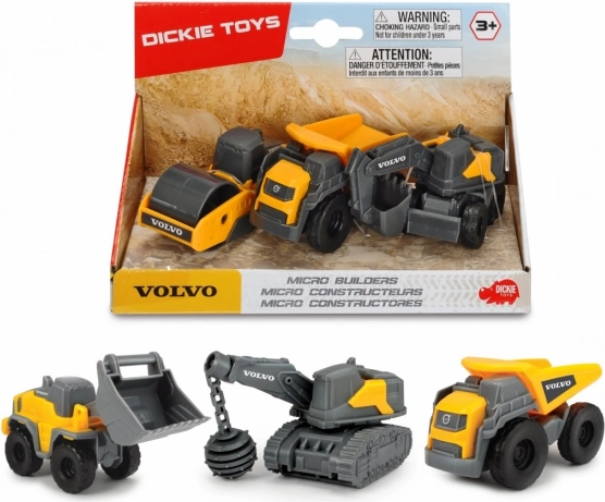 Sættet med Volvo byggekøretøjer inkluderer tre forskellige modeller: tipvogn, gravemaskine og valse. De er lavet af kvalitetsplast, og det farverige gul-grå design fanger enhver lille byggers opmærksomhed.