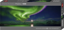 Lad dig betage af nordlysets magiske farver i et bredformat. Panoramapuzzle fra HEYE giver en behagelig udfordring og en fremragende måde at slappe af på i rolige stunder derhjemme.