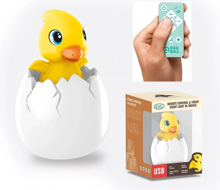 Nattelampen med kylling er udstyret med 130 melodier for nem indsovning. Ud over melodierne har den også flere farvede lysindstillinger, der skaber en behagelig atmosfære. Alle disse funktioner kan styres med en fjernbetjening – tænd/sluk for lampen, ændring af lysfarve, skift af melodi, styring af lydstyrke og sluk-timer.
