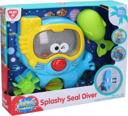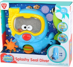 Akvarium med vandmølle gør dit barns badetid til en spændende oplevelse. Brug skeen til at fylde vand i sælens briller og se fiskene danse rundt i akvariet. Tryk på sælens næse og nyd et vandsjov med farverige møller.