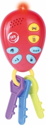 De simulerer lyde fra en rigtig bil – motorstart, dørlåsning, blinklys og horn – hvilket øger barnets interesse.