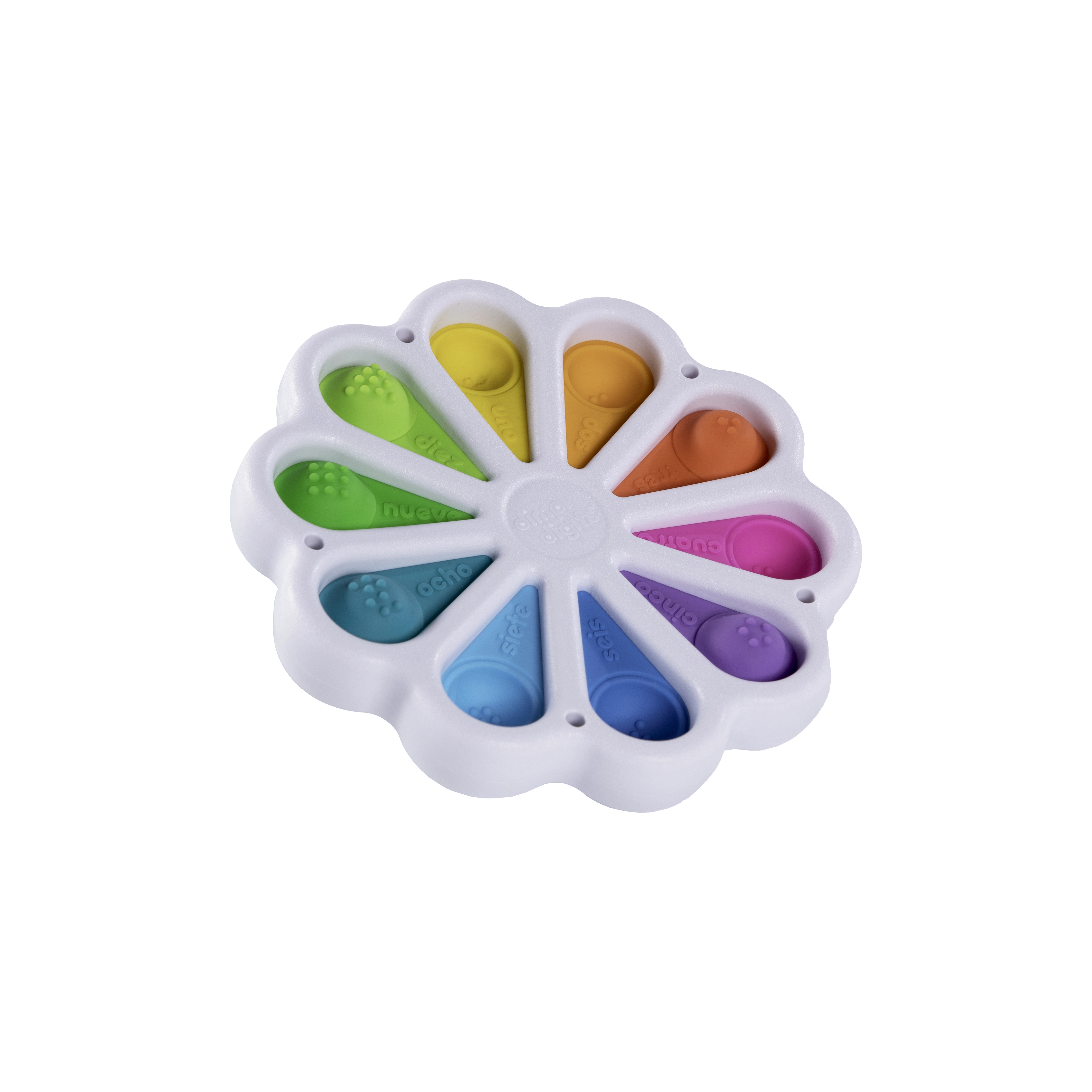 Oplev det sjove sanselige legetøj Dimpl Digits fra FAT BRAIN – blomsterformede pop-bobler med tal og tælling, der støtter fin- og grovmotorik, øje–hånd-koordination og sund psykomotorisk udvikling. De farverige silikonebobler indbyder til at blive trykket på, lære farver og de første tal. Velegnet fra fødslen.