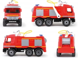 Den enorme brandbil LENA Giga Trucks Actros bringer realistisk action til små helte. Den stabile konstruktion med galvaniserede stålakseler, den drejelige tagmonterede sprøjte og den kraftige stempelpumpe sikrer sjov leg både hjemme og i haven.