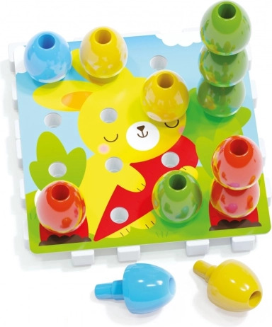 Jumbo Peggy-mosaikken er det ideelle legetøj til de mindste. Takket være de store og afrundede komponenter er de lette at gribe og sætte sammen. Børn kan skabe fantastiske tredimensionelle kompositioner ved at stable knopperne oven på hinanden.