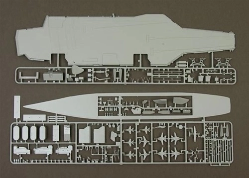 Det flade flydedæk, kommandotårnet og skibets linjer er gengivet for trofast at matche det virkelige forbillede på havet.