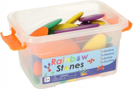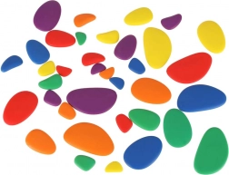 Dette undervisningssæt er ideelt til førskolebørn og yngre skolebørn. Glatte plaststen i klare farver indbyder til fri leg og styrede aktiviteter: børn kan tælle, sammenligne størrelser, sortere efter farver og skabe billeder og mønstre efter kort eller egen fantasi. En praktisk kasse gør det nemt at opbevare alle dele ét sted.