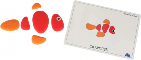 Sten i forskellige størrelser gør det muligt at lægge dyr, genstande og fantasifulde billeder. Kortene fungerer som inspiration og skabeloner til selvstændig skabelse.
