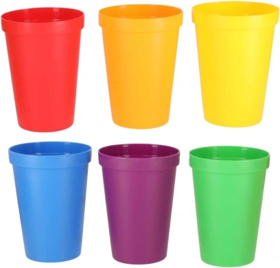 Farvede sten, kopper og opgavekort guider børn fra simple til mere avancerede aktiviteter: fra sortering efter farver til addition og mønsterskabelse.