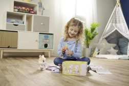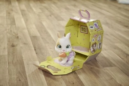Tag nemt kaninen med overalt takket være papemballagen med hank, der fungerer som et bærbart hus. Indeni venter der desuden papirsposer med overraskelser – tematiske accessoires til endnu flere legescenarier. Den magiske pote afslører kæledyrets køn og hjælper børn med at skabe en personlig relation til det.