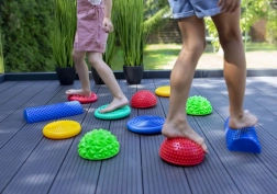 Den sensoriske balancebane består af seks farvede elementer med forskellige teksturer, som understøtter balance, koordinering af bevægelser og taktil perception. Børn kan skabe forskellige ruter, lægge dem i rækker eller cirkler og gå trygt på dem.