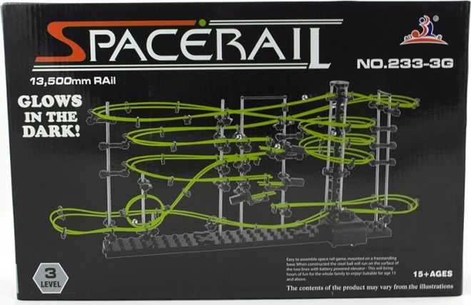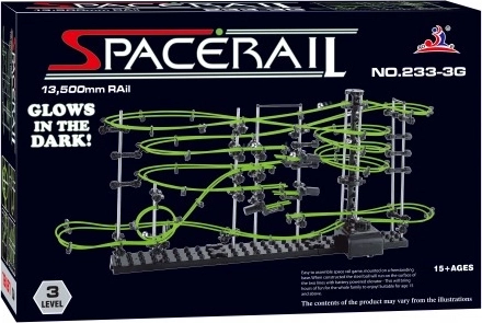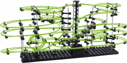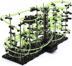 SPACERAIL Glow er et kreativt byggesæt til dem, der elsker teknik, logik og konstruktion. Af robuste plast- og metaldele samt fosforescerende fiber bygger du en avanceret kuglebane på en stabil base. Under opbygningen former du kurver, loops og nedkørsler og finjusterer det ideelle kugleforløb.