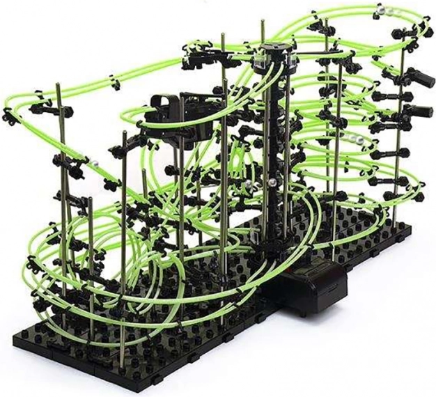 Efter samling kan du se stålkuglerne suse nedad og vende tilbage med den spiralformede elevator til start igen. I mørke lyser banen op, så hver tur ser imponerende ud. Vis familie og venner grundlæggende fysiske principper i praksis – hastighed, tyngdekraft og centrifugalkraft.