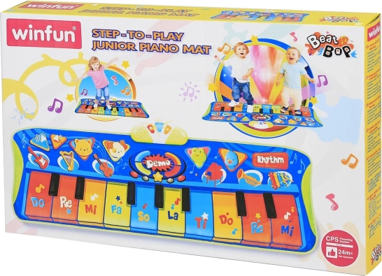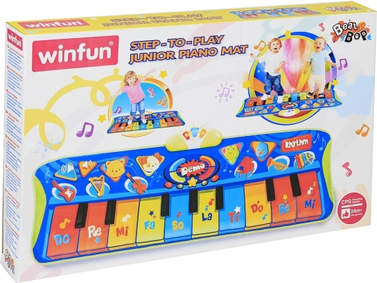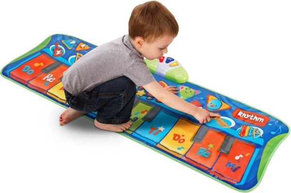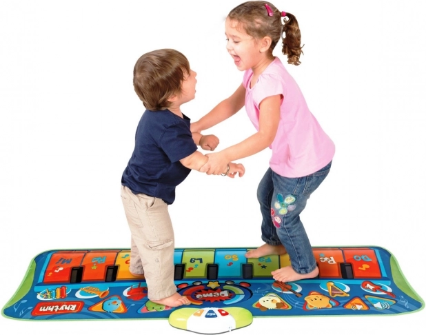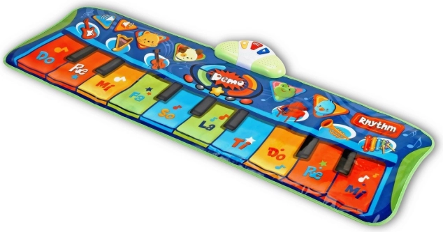Den musikalske måtte har tangenter, som ved berøring afspiller et helt spektrum af lyde. Der er også særlige knapper, hvormed det lille barn kan spille melodier på 6 forskellige instrumenter, samt tangenter med lyde fra 4 venlige dyr. Den store størrelse på dancemåtten (op til 130 cm i længden og 40 cm i bredden) gør det muligt for barnet at aktivere lyde på enhver måde – ikke kun med hænderne, men også stående, løbende og dansende! Takket være dette påvirker Smily Play musikmåtte perfekt barnets motoriske koordination og hjælper med at udvikle grovmotorikken, mens det har det sjovt i de muntre melodiers land. Derudover stimulerer den berørings- og høresansen og udvikler sans for rytme.