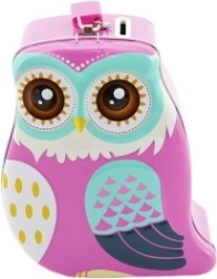 Sparebøssen fås i to attraktive farver – blå og pink. De legende ugler lyser ethvert børneværelse op og motiverer børn til at spare regelmæssigt.