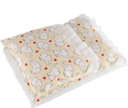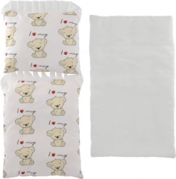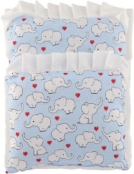 Pude 23 × 28 cm, underlag 50 × 30 cm, dyne 35 × 28 cm – passer perfekt i dukkevogne og dukkesenge.