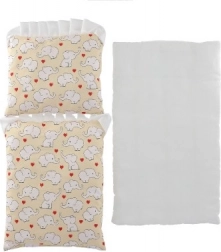 Det praktiske dukkesæt indeholder alt, hvad der behøves for en behagelig søvn: en blød dyne, en luftig pude og et underlag. Takket være de blide materialer og de legende motiver passer det ind i ethvert børneværelse og understøtter fantasiudvikling og rolleleg.