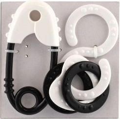 inkluderer en klassisk sikkerhedsnål og en otte-tals form med ringe.