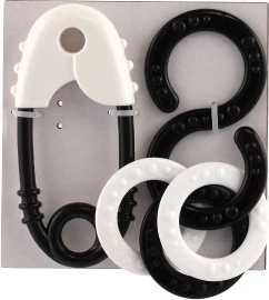 Dette sæt af rasler inkluderer en klassisk sikkerhedsnål og en otte-tals form med ringe.