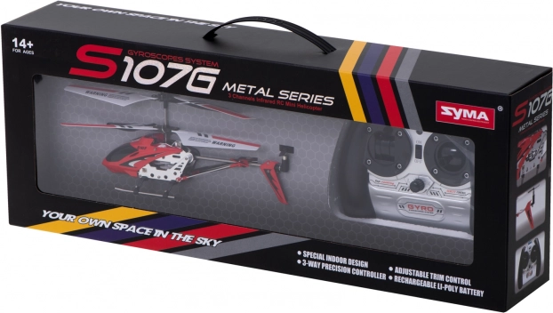 SYMA S107G fra Metal Series kombinerer en robust aluminiumsramme med præcis 3,5-kanals kontrol. Stabil svævning, jævne manøvrer og høj modstandsdygtighed mod fald gør denne model til et fremragende valg til indendørs flyvninger.