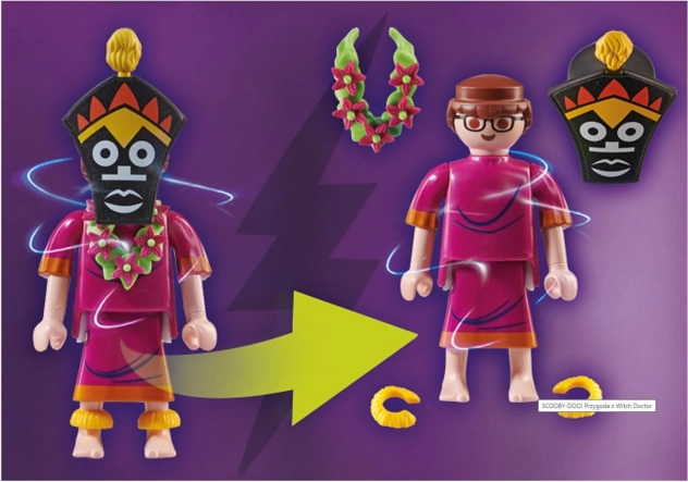 Playmobil Scooby-Doo! Eventyr med den Tryllekyndige Doktor bringer en spændende oplevelse med at løse gåder. Børn kan dykke ned i Scooby-Doo og Velmas univers, hvor de klæder sig i hawaiiansk tøj for at opklare en sag med spøgelser. Sættet lader børnene afsløre den tryllekyndige doktors sande identitet ved hjælp af et kort, der kan scannes med læseren fra Mystery Machine eller Spøgelseshuset.