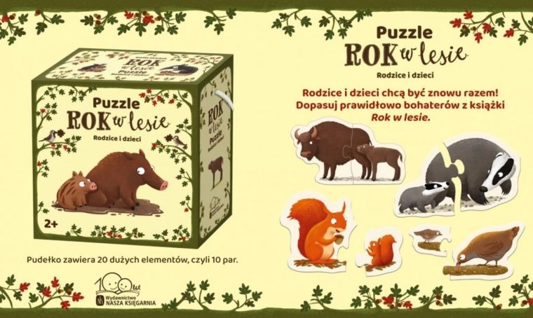 Oplev skovens magi med et todelt puslespil, hvor børn matcher forældre med deres unger. Store og holdbare brikker, smukke illustrationer af Emilia Dziubak og en sjov, lærerig form støtter kendskab til dyr, udvikler fantasi og tålmodighed. Ideelt som det første puslespil til de mindste – start med nogle få par og tilføj gradvist flere.