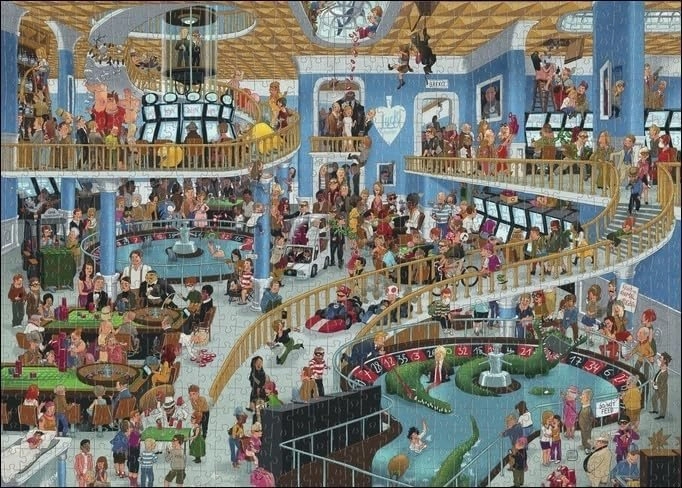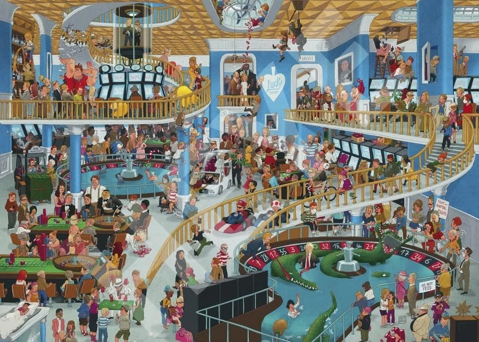Oplev en verden af kreativ underholdning med puslespillet Kaotisk Kasino af den anerkendte kunstner Uli Oesterle. Dette puslespil fører dig ind i en hvirvel af farver og former, hvor hver brik er endnu et skridt mod at skabe en fantastisk kortspils-karikatur.