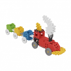 Med tandhjul og roterende forbindelser opstår funktionsdygtige modeller – helikoptere, fly og køretøjer. Børn lærer naturligt principperne for bevægelse og gearudveksling.