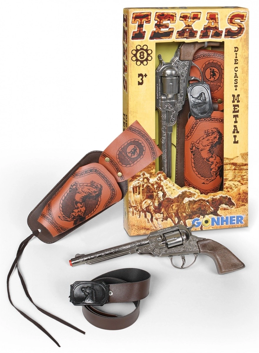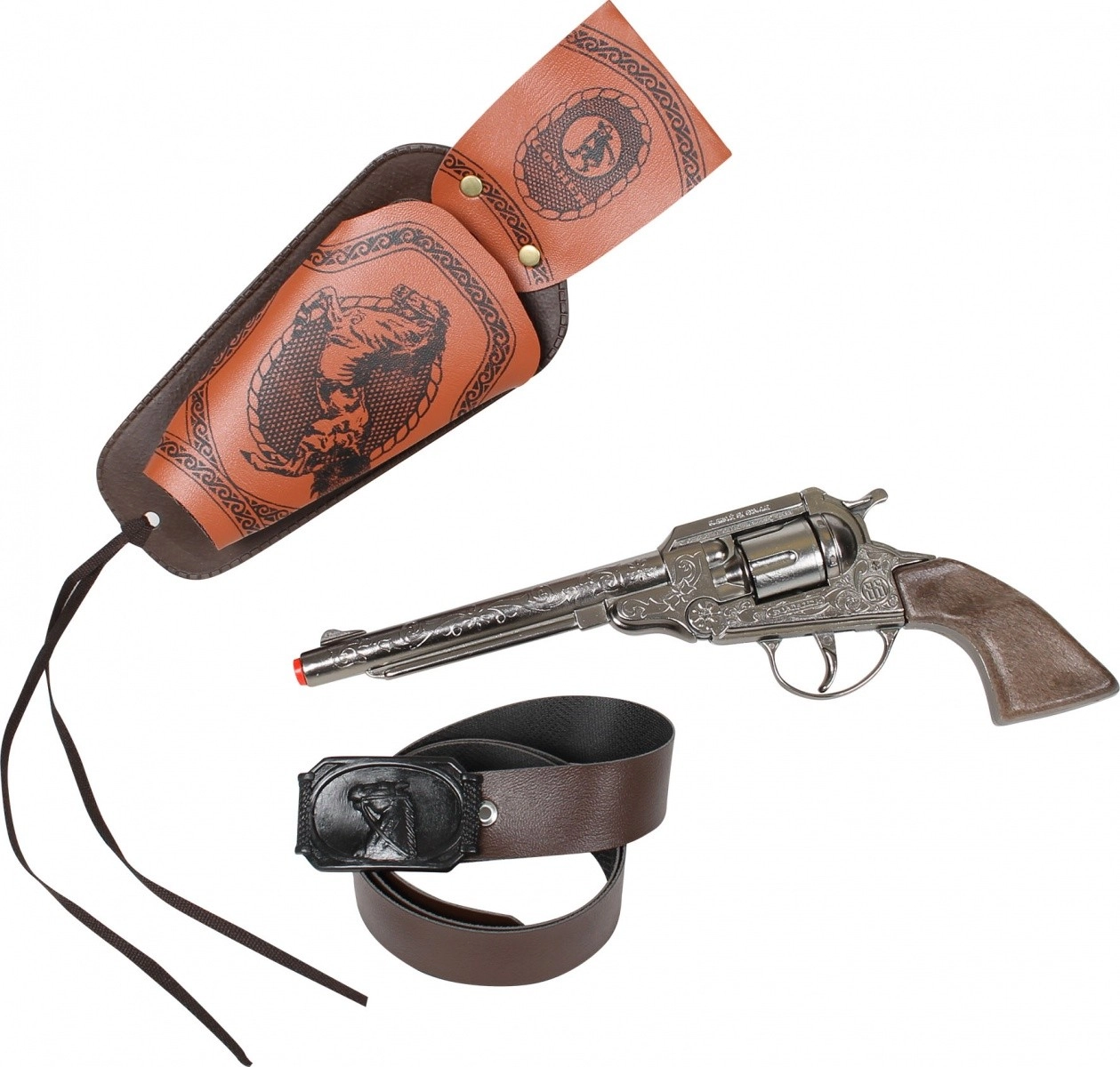 Metal cowboyrevolver til 8 skud med hylster i pakken.