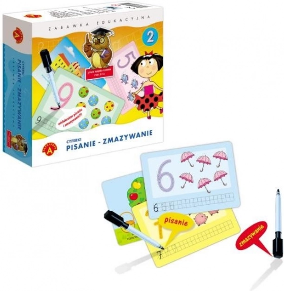 En sjov læringsleg til førskolebørn, som hjælper dem med at mestre de korrekte former på cifre, deres genkendelse og grundlæggende regning. Med genanvendelige tavler og en tusch der kan viskes ud træner børn også finmotorik, opmærksomhed og koncentration – alt sammen på en legende måde.