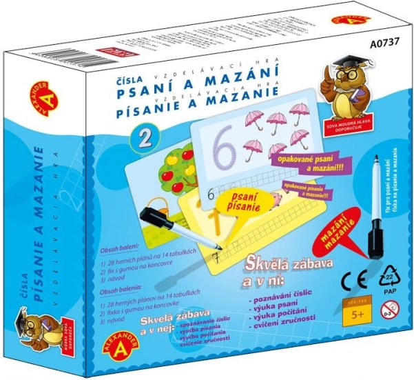 - 14 dobbeltsidede tavler (28 motiver), afviskelig tusch med svamp, vejledning på tjekkisk og slovensk