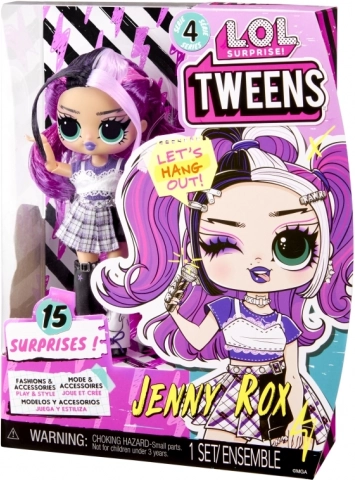 Denne stilfulde dukke er ideel til piger fra 3 år og garanterer timevis af fantasifuld leg og underholdning. Opmærksomheden på detaljer og den høje kvalitet gør LOL Surprise Tweens dukken Jenny Rox helt unik. Med en højde på 16,5 cm skiller dukken sig ud med sit modeoutfit og tilbehør.