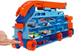 Oplev dobbelt så meget action med transportøren, der bliver til en tyngdekraftsbane! Det store køretøj på seks kraftige hjul transporterer og opbevarer hele samlingen sikkert, og med ét enkelt trin forvandler du det til en 60 cm nedkørsel til adrenalinfyldte løb.