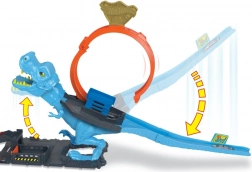 Nedkæmp dinosaurussen og red byen med sættet Hot Wheels City T‑Rex‑loop. Indeholder en kraftig affyrer, et 22,5 cm loop og en bane, der fører gennem munden på den blå T‑Rex. Ved et vellykket træf skifter T‑Rex’ øjne fra rasende gule til X efter knockout. I pakken er der 1 metalbil i skala 1:64, og sættet kan forbindes med andre baner fra Hot Wheels.
