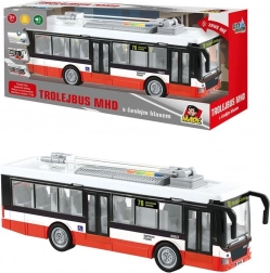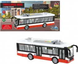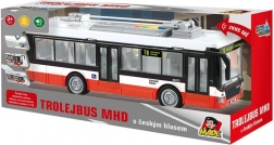 Denne detaljerede trolleybus giver børn en autentisk oplevelse af bytrafik. Legetøjet afspiller holdepladsannonceringer på tjekkisk (Hlavní nádraží, Městské divadlo, Zoologická zahrada) og er udstyret med attraktive lyseffekter. Takket være friktionsdrevet er det nok at skubbe trolleybussen, så kører den fremad.