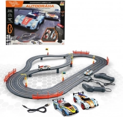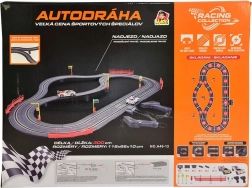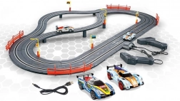 Pakken indeholder to racerbiler og to håndholdte controllere til øjeblikkelige starter og præcis hastighedskontrol. Bilbanen er pakket i en tjekkisk boks og er ideel som gave til både små og store entusiaster.