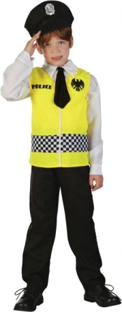 Børnekostume politibetjent til højde 120–130 cm. Realistisk udseende, behagelig pasform, ideelt til karneval og skolearrangementer. Til børn 5–9 år.
